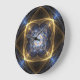 Infunda seu espaço com energia dinâmica usando este relógio de parede cativante mostrando um design fractal abstrato simétrico. Contra um fundo preto profundo, ouro vibrante e luz azul elétrica irradiam para fora em um padrão intrincado e brilhante. Este trabalho de arte digital apresenta estruturas complexas em camadas e elementos lineares agudos, criando uma sensação de poderoso fluxo de energia e sofisticação moderna. A simetria precisa e o brilho intenso fazem dele um ponto focal único. Perfeito para adicionar um toque de elegância futurista à sua sala de estar, escritório, quarto ou espaço criativo, este relógio é uma peça que combina a função com uma arte visual impressionante. É mais do que uma forma de dizer o tempo; é uma peça de decoração funcional que reflete uma paixão pela beleza abstrato e design de ponta. Deixe esse relógio de olho transformar sua parede e mantê-lo no horário.