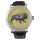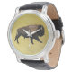 Uma pintura digital do bison americano, ou búfalo, sobreposta a uma imagem de fundo em couro bronzeado. O bison (Bison bison), o maior mamífero terrestre da América do Norte, é considerado uma espécie-chave: já vagaram pelo continente em rebanhos de excelente, e sua pressão de pastagem ajudou a moldar a ecologia das planícies Excelentes. Foram descritas duas subespécies ou ecótipos: a bisão (bison bison bison), de tamanho menor e com uma corcova mais arredondada, e a bisão de madeira (Bison bison athabascae) - a maior das duas e com uma corcova quadrada mais alta. O bison é um relativo recém-chegado à América do Norte, tendo se originado na Eurásia e migrado pelo estreito de Bering Há cerca de 10 mil anos substituiu o bisão-estepe (Bison priscus), um imigrante anterior que era muito maior. Pensa-se que a bisão de estepe se extinguiu devido à mudança do ecossistema e à pressão da caça na sequência do desenvolvimento do ponto de Clovis e da tecnologia conexa, e à melhoria das capacidades de caça. Nesse mesmo período, outras megafaunas desapareceram e foram substituídas até certo ponto por animais eurasiáticos imigrantes mais bem adaptados aos humanos predadores. O bisão existente, tecnicamente uma forma anã, foi um desses animais. Estima-se que houve 20-30 milhões de bisontes, também chamados de búfalos, em roaming na América do Norte. O seu alcance, em tempos, incluía aproximadamente um triângulo entre o Excelente Bear Lake, no extremo noroeste do Canadá, a sul, e os estados mexicanos de Durango e Nuevo León, e a leste, ao longo da fronteira ocidental das montanhas Appalachian. As primeiras vias férreas da América do Norte, com exceção dos caminhos obliterados de mastodonte ou de musko, foram os traços feitos por bison e veado na migração sazonal e entre os campos de alimentação e os lamaçados salinos. Muitas destas rotas, marteladas por inúmeros cascos instintivamente a seguir a bacias hidrográficas e as cristas de serras para evitar a lama de verão e as derivas de neve de inverno em lugares baixos, foram seguidas por Americanos nativos e foram inestimáveis para os exploradores. O termo "búfalo" pode ser considerado um erro para este animal, uma vez que está apenas distantemente relacionado com qualquer um dos "verdadeiros búfalos", o búfalo asiático e o búfalo africano. No entanto, "bison" é uma palavra grega que significa "animal parecido com boi", enquanto "búfalo" se originou com os caçadores franceses de peles que chamavam estes boeufs gigantes de bestas, que significam bois ou bullock - por isso ambos os nomes, "bison" e "búfalo", têm um significado semelhante. Em relação a esse animal, o termo "búfalo", que data de 1635, tem uma história muito mais longa do que o termo "bison", que foi registrado pela primeira vez em 1774. O bisão americano está mais relacionado ao bisão sábio ou europeu. A caça não regulamentada de bisão, que culminou em abates em massa nos anos 1870, reduziu a população para 1.091 em 1889. Hoje, cerca de 500.000 bisontes vivem na América do Norte. A maioria não é pura bisão, mas as preferencialmentes foram cruzadas com bovinos no passado e são criadas como gado em fazendas. Menos de 30.000 bisontes estão em manadas de conservação, e menos de 5.000 estão livres e livres de doenças. Hoje, bisontes estão ecologicamente extintos ao longo da maior parte de sua faixa histórica, exceto alguns parques nacionais e outras pequenas áreas de vida selvagem. O Parque Nacional de Yellowstone tem a maior população de bisão de planícies de roaming livre (cerca de 4.000), e o Parque Nacional de Buffalo de Madeira tem a maior população de bisão de madeira de roaming livre (cerca de 10.000). Um bison tem um casaco de inverno marrom, comprido e escuro, e um peso mais leve, casaco de verão marrom mais claro. O casaco de inverno é tão grosso e bem isolado que a neve pode cobrir as costas sem derreter. O bison masculino é ligeiramente maior que as mulheres. O bisonte das planícies pesa normalmente de 700 a 2.200 lbs. O maior touro selvagem já registrado pesava 2.800 lbs. Quando criado em cativeiro e cultivado para carne, o bisão pode crescer de forma não natural pesada e o maior bisonte semimdoméstico pesava 3.800 lbs. As cabeças e os quartos dianteiros são maciços, e ambos os sexos têm cornos curtos e curvos que podem crescer até 2 pés de comprimento, que usam para lutar pelo status dentro do rebanho e pela defesa. Bison são herbívoros, pastando nas gramíneas e bordas das pradarias norte-americanas. O seu calendário diário envolve períodos de duas horas de pastoreio, repouso e mastigação em cud, passando depois para um novo local para pastar novamente. Este movimento regular garante que bison raramente invade uma área. Bison frequentemente esfrega e rola no chão criando depressões ricas e como discos chamados wallows. Rolo de bisonte em wallow, wet or dry, cobrindo-se com pó ou lama. As explicações passadas e as hipóteses atuais sugeridas para o comportamento ao engolir incluem o comportamento ao aliciamento associado à desmoronamento, a interação homem-homem (normalmente o comportamento ao rubor), o comportamento social para a coesão do grupo, o comportamento ao brincar, o alivio da irritação cutânea devida a insetos picantes, a redução de carraças e piolhos, e a termorregulação. Ondas eram uma característica comum das planícies. No inverno, bison pode cavar por uma neve profunda com suas cabeças para alcançar a vegetação abaixo. Bison tem visão fraca, mas tem audição aguda e um excelente olfato. Bison pode alcançar velocidades de até 35 mph. Bison tem uma expectativa de vida de aproximadamente 15 anos na natureza e até 25 anos em cativeiro. Bison mate no final da primavera e no verão em áreas mais abertas. Durante o outono e o inverno, bisão tende a se reunir em mais áreas arborizadas. Durante esse tempo, bison compensa em comp