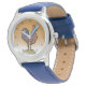 Este lindo relógio de desenho mostra uma galeria orgulhosa esperando o sol nascer. Disponível em uma variedade de relógios de na moda!