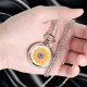 Este relógio de colar floral é decorado com um girassol amarelo. Original Watercolor © Michele Davies.