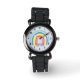 Este lindo e fofo relógio infantil mostra um adorável desenho do arco-íris. Esta design colorida adorável também tem um lugar para você adicionar o nome da sua garota. Com números claros e facilmente legíveis, este 'primeiro' relógio é excelente para aqueles que começam a aprender o tempo. O design perfeito para o seu pequeno!