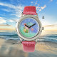Relógio gnomo de praia rosa flamingo, adiciona nome