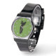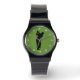 Curioso relógio de golfe verde para o melhor golfista da sua vida. Jogador de golfe #1 batendo uma bola em um fundo verde com bolas como o número do relógio neste dom único relógio de pulso. O pai perfeito ou presente de avô para um pai ou avô que adora golfe.