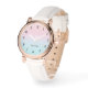 Relógio Gradiente de Pastel Azul Rosa com Linhas Douradas