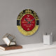Os damascos elegantes do preto e do ouro projetam com círculo vermelho escuro com texto customizável para o 50th aniversário de casamento. Os corações do diamante imprimem acentos