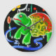 Pintura engraçada, funky da tartaruga em cores preliminares brilhantes, com borboleta e flores.