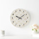 Um relógio com um padrão elegante, com biqueirão dourado em um padrão repetitivo em um fundo creme colorido.