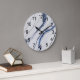 This wall clock features an elegant off-white and blue marble design, with (custom) black numerals.