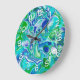 Relógio Grande Abstrato de Arte Fluida Marble Azul e Verde