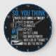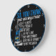 Este relógio de parede destaca a complexa realidade de ser motorista de caminhão, além de dirigir. Em um fundo preto com uma borda azul, ele apresenta uma ilustração de caminhão azul. O texto "ENTÃO, VOCÊ ACHA QUE EU SÓ DIRIJO UM CAMINHO? 13 ENGRENAGENS 18 RODAS 40 TONELADAS 54 PÉS DE LONGA POTÊNCIA 1800 LBS DE TORQUE VOCÊ FAZ A MATEMÁTICA!", é exibido, enfatizando o poder e a tecnicidade da profissão.