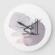 The composition highlights fluid black lettering set against a soft abstract background of muted neutral tones and subtle watercolor textures. The open space and gentle contrast create a sense of visual balance and quiet sophistication.
