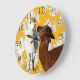 Relógio Grande Alpacas Castanhos E Brancos Com Flores De Cactos,