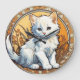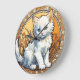 Relógio com um gato no estilo de Alphonse Mucha! Este gatinho branco fofo parece adorável para o espectador. Flores decoram a cena. Um presente perfeito para amantes de gatos e colecionadores de Art Nouveau!