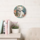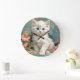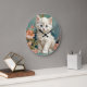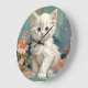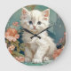 Relógio com um gato branco no estilo de Alphonse Mucha! Este gatinho liso e de olhos azuis posou com flores cor-de-rosa e cobertores azuis. Um presente fabuloso para amantes de gatos e colecionadores de Art Nouveau!