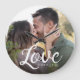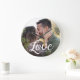 Elegante manutenção moderna do casamento para Newlyweds, Dia de os namorados, aniversários, mostrando seu casamento ou foto de noivado favoritos com a caligrafia moderna lendo LOVE sobre seus nomes personalizados e data sobre um gradiente escuro para fazer a tipografia se destacar.
