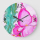 Um belo relógio floral cor-de-rosa que vai iluminar qualquer quarto na sua casa. Um excelente de arte conversacional para o seu escritório ou casa.