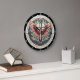 This captivating wall clock features a beautiful stained glass design of a majestic cross with gracefully outstretched, multi-toned wings. The intricate details and radiant hues of blue, pink, and gold create a powerful and serene focal point, perfect for adding a touch of faith and spiritual beauty to any home or sacred space. Edit color of the clocks numbers in the Design tool to your favored colors.