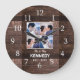 Relógios de casamento para personalizar com a foto do casal e o sobrenome. O fundo de madeira rústica adiciona um olhar de canto. Um presente de excelente para casamentos, aniversários, e novo aquecimento doméstico.