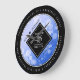 Celebrar o 45º aniversário do casamento da safira e um amor que representa o teste do tempo com este relógio comemorativo! As letras esbeltas a preto e branco com um confete hexagonal sobre um fundo azul de safira acrescentam um toque memorável para esta ocasião especial e um marco extraordinário. Personalize com os nomes dos casais, anos de casamento e mensagens de parabéns. Design © W.H. Sim. Mais informações em zazzle.com/expressionsoccasions