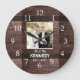 Relógios de casamento para personalizar com a foto do casal e o sobrenome. O fundo rústico de madeira adiciona uma aparência cúbica. Um presente de excelente para casamentos, aniversários e novo lar.