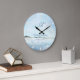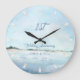 Um relógio moderno, elegante e personalizado de aniversários de casamento que inclui um fundo pintado à mão de uma linha da costa do oceano selvagem, a tipografia moderna e as palavras "Aniversário de Casamento" em caligrafia elegante. Um belo presente de casamento personalizado ou aniversário de casamento para um jovem - e jovem de coração - casal comemorando suas 1ruas, 3º, 5, 10º, 25 ou 50º aniversário.
