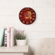 Relógio da Caligrafia Chinesa Personalizada Vermelha e Dourada com o Ano da Caligrafia no Cavalo 2014. Adicione seu próprio texto personalizado.