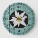 Esse relógio acrílico redondo tem gráficos para dar a ele uma barra de madeira aqua, com um disco preto redondo, no meio, com gráficos de uma flor Edelweiss solteiro grande e branca. Números romanos por fora para um olhar antiquado. Personalize para adicionar qualquer texto que você quiser. Faz uma ideia de presente de excelente.
