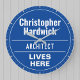 Estilo Comemorativo Divertido Presente em Parede na forma de Relógio de Parede para um Arquiteto. Placa azul e branca. Edite a design para alterar o texto de acordo com o destinatário do presente.