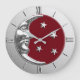 Relógio Grande Arte Deco Lua e Estrelas - Vermelho Escuro e Prata