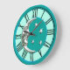 Relógio Grande Arte Deco Moon e Estrelas - Turquesa e Prata