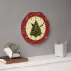 A árvore decorada festiva do natal vintage na etiqueta redonda com vermelho e no fundo do damasco do ouro com pia batismal feita sob encomenda numerou o seletor.