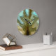 Um design abstrato de uma árvore nas madeiras contra um céu azul.