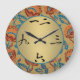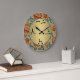 10,75" pulso de disparo de parede acrílico redondo com uma imagem de umas flores asiáticas alaranjadas e azuis bonitas no tan. O chinês numerou a face do relógio no ouro com beira da cerceta. Veja a coleção inteira do pulso de disparo das flores & das plantas na seção HOME.