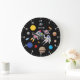 Relógio de sistema solar divertido e colorido. Desenho de desenho animado dos planetas e do espaço exterior. Aventura astronauta espacial.