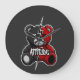 Make a bold statement with this edgy and eye-catching "Attitude Split Bear" design. A fierce split-color teddy bear divided by a sharp lightning bolt — half black, half blood red — with signature X-eyes and dripping "ATTITUDE" graffiti text across the chest.