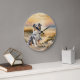 A summer beach cove with tall grasses and the sun setting over the ocean that sets off a sweet Australian Shepherd dog creates lovely wall clock that is sure to bring smiles.