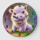 Um adorável hipopótamo bebê com flores e um fundo arco-íris. Perfeito para quartos de bebês ou crianças pequenas.