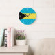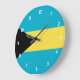 Bandeira das Baamas. A bandeira das Bahamas apresenta um triângulo equilátero preto à esquerda, que representa a unidade e a determinação das pessoas das Baamas. O triângulo é orientado para três faixas de largura igual simbolizando áreas de recursos naturais; duas faixas aquamarinas no topo e no fundo da bandeira que representam o mar e uma faixa de ouro que representa a terra. A bandeira foi adotada em 10 de julho de 1973.