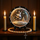 Este elegante gráfico redondo retrata uma graciosa bailarina dançando em uma terra maravilhosa de inverno. Ela está envenenada sobre um palco de neve, rodeada por delicados flocos de neve e uma árvore de Natal caprichosa. A cena inteira com uma faixa lendo 'MERRY CHRISTMAS', criando um design de feriado festivo e mágico.
