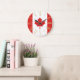Este relógio de parede apresenta uma imagem da bandeira do Canadá no centro. A folha vermelha do mapa é representada no centro da bandeira sobre um fundo branco, com faixas vermelhas correspondentes nas laterais. As horas são impressas num estilo folha de ouro, design numérico romano. Representem seu estilo a herança canadense!