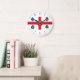 Relógio com a bandeira de Montreal, a cidade mais populosa da província de Quebec, Canadá. Uma bandeira branca com uma cruz vermelha, um pinho branco, uma Fleur-de-lys azul, uma rosa vermelha de Lancaster, uma shamrock, e um caroço