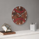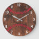 Relógio de baseball esportivo de madeira. O relógio é feito para se assemelhar a uma bola de beisebol que apresenta pontos vermelhos de baseball e letras brancas de relógio com fundo de madeira rústico. Um presente divertido e esportivo para qualquer um que ama beisebol. Também faz um presente excelente para o dia de os pais.