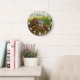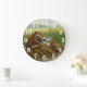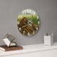 Tranquil nature clock features a watchful adult beaver standing on a log with two playful kits by the water, surrounded by lush reeds. White numerals on earthy tones create serene wetland charm—perfect for nature lovers or family-themed gifts.