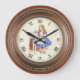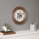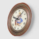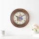 10,75 pol de relógio redondo de parede acrílica com uma imagem vintage Alice no País das Maravilhas de Alice parada em uma mesa segurando a famosa garrafa "me beba" em uma espessa e marrom estrutura de madeira. Veja toda a coleção Wonderland Clock no DECOR | Seção Relógios.