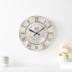 Presentes de Renda Lindos para Relógio de Aniversário de 13 Anos de Casamento. Desenhos Personalizados de Renda, Coração e Monograma e Relógio de Aniversário Personalizado com Nomes do Casal, Data e QUALQUER ANO (especialmente o aniversário de 8 anos, 12 e 30 anos), Ocasional ou Transferir este Design para Milhares de outros presentes de aniversário de 13 anos, decoração de casa e muito mais. Lindo desenho de Renda delicada rodeia um Fundo de cor Pérola Bonita. O Monograma está dentro de um Relógio em forma de Coração de cor taupe suave. O símbolo de aniversário de Pérola torna esses presentes de aniversário de casamento por ano apropriados para o presente de aniversário de 12 anos de casamento e símbolo de aniversário de 30 anos.