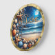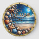 Este relógio circular apresenta uma cena de praia lua cativante. O primeiro plano é adornado com uma rica variedade de conchas, pérolas e estrelas-do-mar iridescentes. A palavra "BEM-VINDO" é intricadamente trabalhada a partir de uma escrita ouro, de cor pérola. Atrás dele, ondas luonuosas abrem a costa sob um céu estrelado, todas envoltas em um ouro, armação costurada.