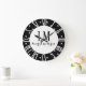 This elegant wall clock features a black and white bow design paired with a personalized script monogram for a refined, timeless look. Designed with clean typography and a balanced neutral palette, it complements modern offices, bedrooms, and thoughtfully styled home spaces. The minimalist composition offers quiet sophistication, making it ideal for professional environments, personalized décor, or elevated gifting. A subtle statement piece that blends function with understated luxury.