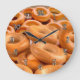 Relógios engraçados de decoração de parede da cozinha com um padrão de bagels e números de relógio de rico projetados como um relógio de cozinha, relógio para um compro ou uma padaria de bagel, ou apenas uma novidade para sua casa.