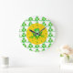Os relógios de parede de sapo são brancos e verdes, com pequenos padrões de sapos na face do relógio, neste design colorido do relógio de decoração de parede para sua cozinha, banheiro ou qualquer quarto na sua casa que você queira adicionar alguma cor e personagem. Excelente para quartos para crianças, rapazes ou raparigas.