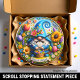 Este relógio de parede redondo vibrante apresenta uma ilustração digital caprichosa em estilo 3D de um gnomo de jardim alegre celebrando a chegada da primavera. O gnomo usa um chapéu azul brilhante texturizado com uma ponta espiral divertida e segura uma cesta de vime transbordando com flores coloridas da primavera. Uma bela variedade de flores superdimensionadas, incluindo um girassol dourado, tulipas rosa e lavanda roxa, circula o gnomo em uma grinalda floral exuberante. Na parte inferior, uma faixa de pergaminho branco exibe a saudação amigável "OLÁ PRIMAVERA" em letras azuis negrito. O design é definido contra um fundo azul celeste suave com borboletas minúsculas e detalhes cintilantes. Esta peça funcional de decoração para casa é um presente sazonal perfeito, ideal para alegrar uma co